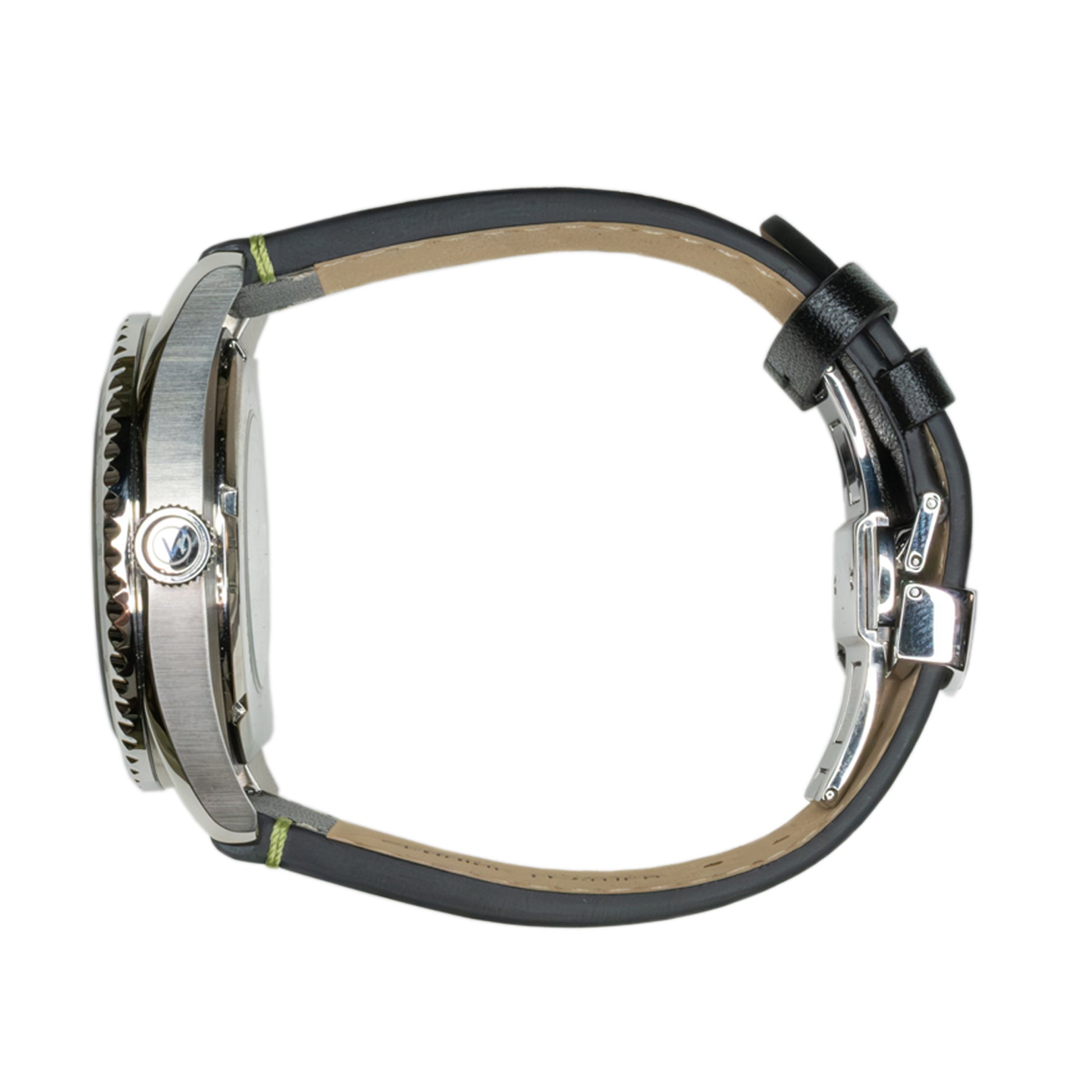 - Band: Kalfsleer met groen stiksel en vlinder vouwsluiting met pushers; extra stalen band en toekomstige rubberband beschikbaar